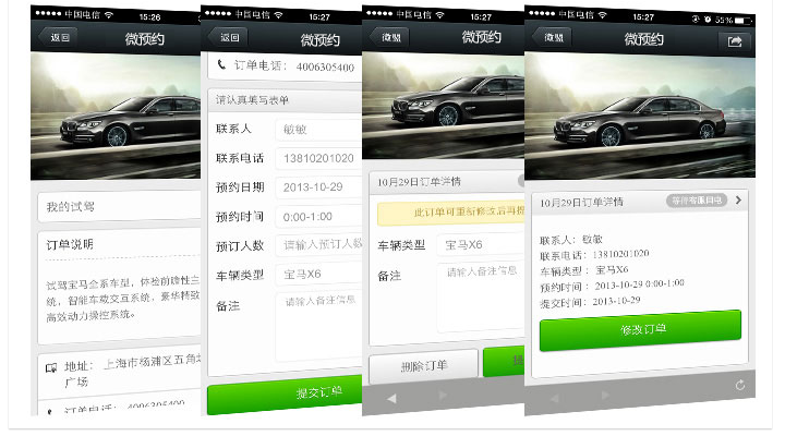 微预约是商家利用微信港平台实现在线预约的一种服务,可以运用于汽车、房产、酒店、医疗、餐饮等一系列行业,给用户的出行办事、购物、消费带来了极大的便利!且操作简单,响应速度非常快,受到业界的一致好评!